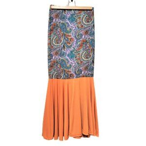 Elastic Waist Long Maxi Orange Skirt with multicolored Paisley Print