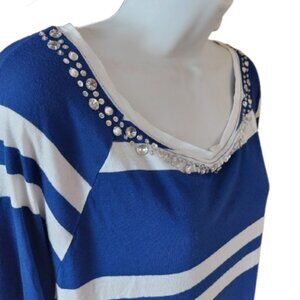 Long Sleeve Blue Striped Blouse Blousy Top Size 2X