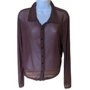 Long Sleeve Brown Mesh Transparent Button Down Shirt Size 1XL New NWOT