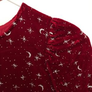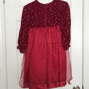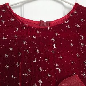 Long Sleeve Dress Girls Size 10 With Rose Bow Tie Back Red Silver Starry Night