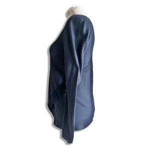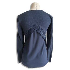 Long Sleeve Knit Top Womens Size S Navy Blue Silky Fabric and Lace Black