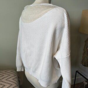 Long Sleeve Mesh Neck Sweater White Knit