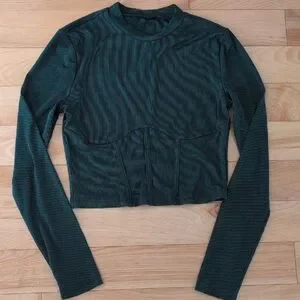 Long Sleeve Ribbed Top - Green