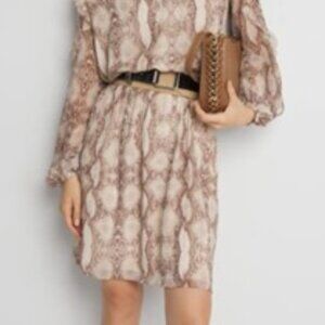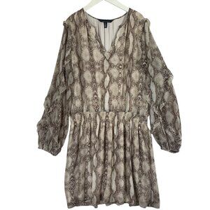 Long Sleeve Ruffle Dress snake print ruffle size xl White house black market lightweight