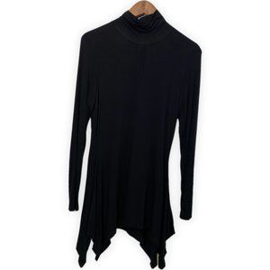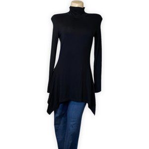 Long Sleeve Stretch Turtleneck Blouse Black Color Loose Asymmetric . Size S