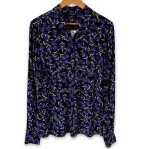 With this beautiful floral pattern blouse designed for a perfect fit, it features a striking black and blue floral pattern, long sleeves, and a classic button-down front. Made to fit size 4, this blouse is new with tags (NWT), ensuring top quality and a fresh addition to your collection.