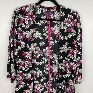 Long Tall Sally Floral 3/4 Sleeves Kimono Size 8 Black White Pink