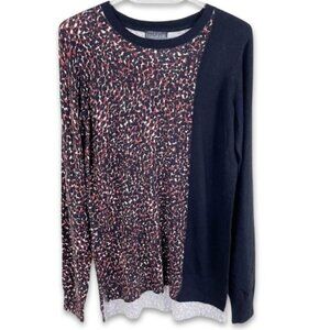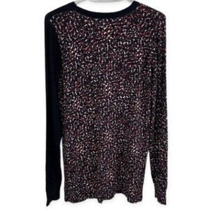 Long Tall Sally Knit Sweater Crew Neck Cheetah Pattern & Plain Block Women's S