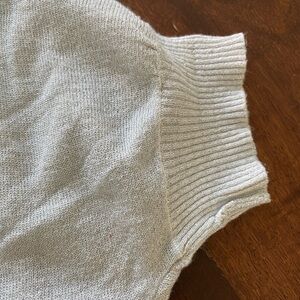 Super light and airy, I actually bought this when I was pregnant and wore it over my baby bump (it’s not a maternity shirt). Continued to wear it afterwards as the sparkle in it made me happy. Light and comfy, pairs well with jeans or a fancy pair of pants. Longer fit.