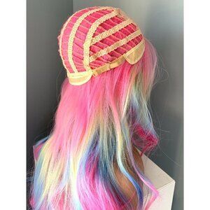 A quick and easy way to change up your look instantly! Perfect for first-time wig users. a long 26 inch neon rainbow wig with a natural body wave. The perfect unicorn or mermaid wig, instantly amp up this years Halloween costume. Our synthetic wigs are made with low lustre to give a natural look, tangle free and made with heat resistant fibres, up to 100 degrees for restyle. This trendy wig is sure to turns the heads. Go ahead, make a statement!