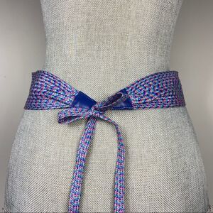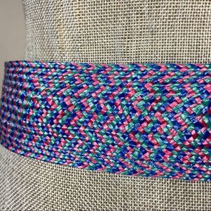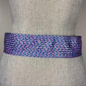 Pink teal blue braided 80s 90s belt super fun. No belt buckle this just ties close. AVON brand. Good vintage condition Pictured on size 5/6 mannequin