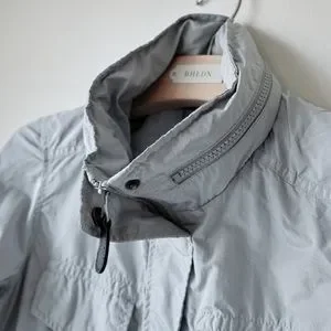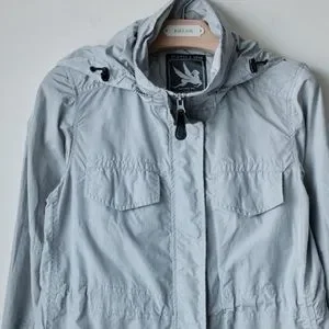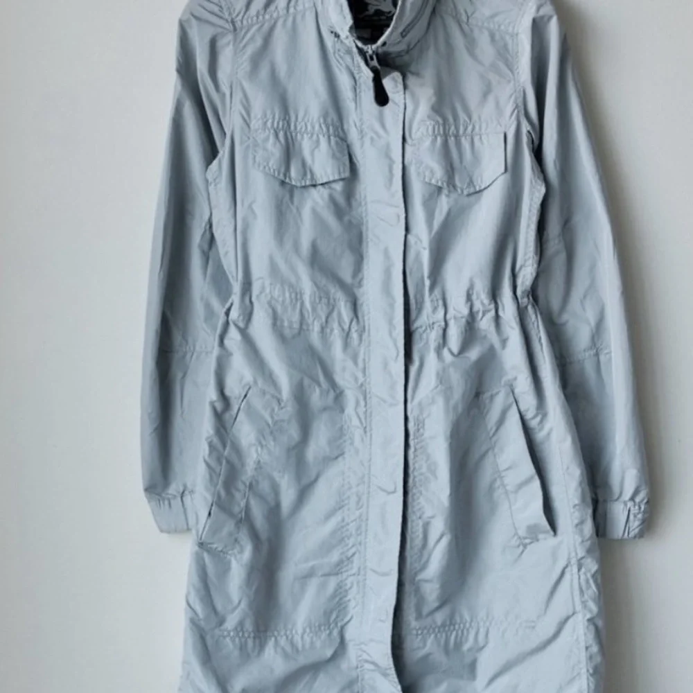 Nice colours,hidden hood in the zipped collar ,adjustable waist strap,4 front pocket,100% polyester,new without tags