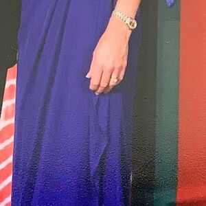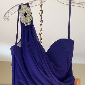 One shoulder with embellishment. Comes with wrap of the same colour. Worn only once to a ball.