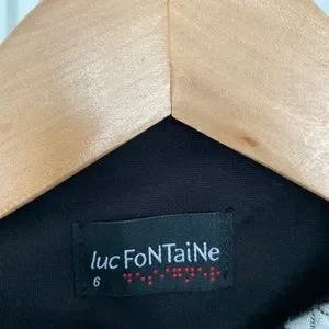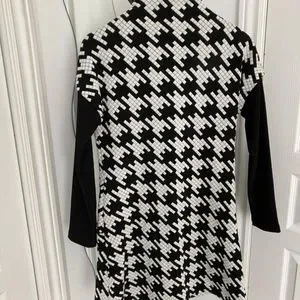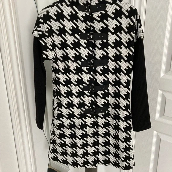 Beautiful 3/4 black and white jacket by designer Luc Fontaine
