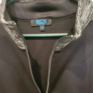 THis is a new over the head quarter zip long sleeve jacket made with lovely smooth light weight fabric in black trimmed with grey front pockets and stretch cuffs very roomy cut