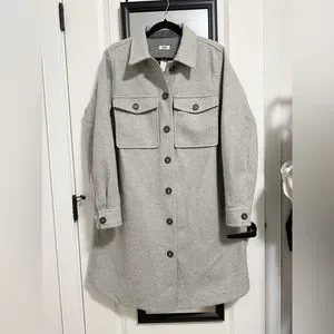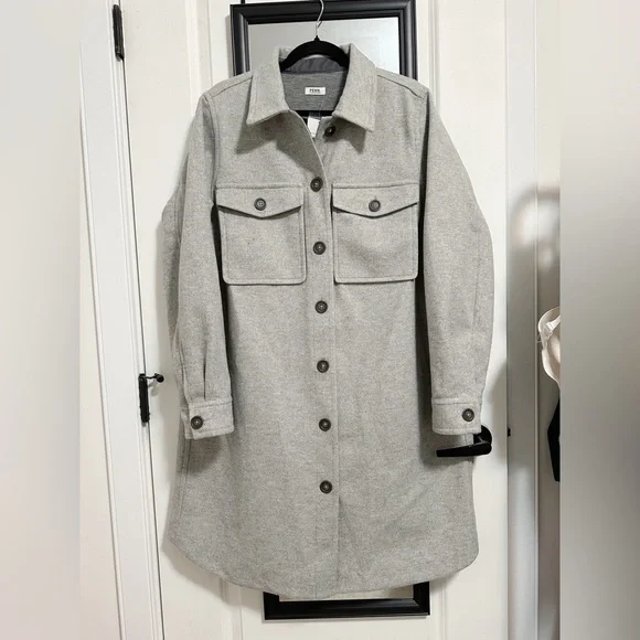 Gray felt-like material, long gray shacket from PENNINGTONS (high quality). Brand new with tags.