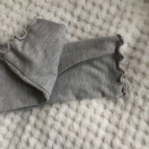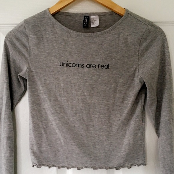 Light, thin, stretchy, comfortable material. Across the chest reads Unicorns are real. Ruffles act as a border around the bottom lining of the shirt and around the sleeves shown in the pictures. Also fitted around the chest area. 🦄🦄