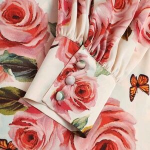 Elegant floral dress featuring a beautiful pink and cream design. Perfect for any occasion.