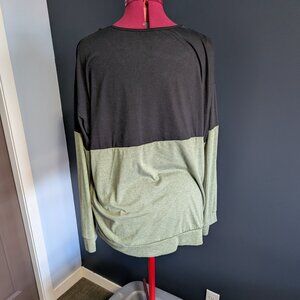 Long sleeve green and black shirt with front criss-cross detail. Never worn. 100% polyester