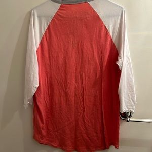 T shirt bySociety. Peachy orange. Very nice for summer. Has sayings on it. Such as believe in yourself. Has a very Interesting design of the sun. Made in LA. Free people like.