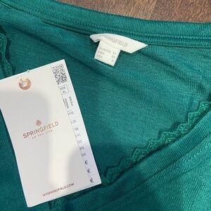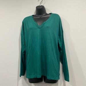 V neck emerald green blouse. Beautiful long sleeve and fits like an XL. Purchased in Europe. Brand new with tags but ripped them off cuz it was supposed to be worn but it ended up being the wrong size. Beautiful top regardless and deserves a new home.