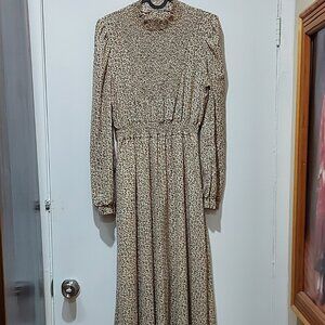 Floral midi dress with elastic neck, chest and waist detail. Chest 36" stretch Waist 22" to 30 stretch Length 46"