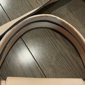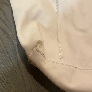This elegant soft pink /beige leather handbag is perfect for any occasion. Its sleek design make it a versatile addition to your wardrobe.