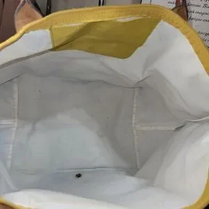 Stylish women's bag in a vibrant yellow with a chic brown accent. Perfect for any occasion.