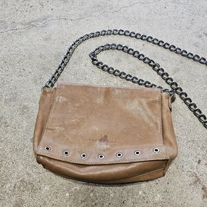 Elevate your style with this chic tan bag featuring a sleek chain strap. Perfect for any occasion.