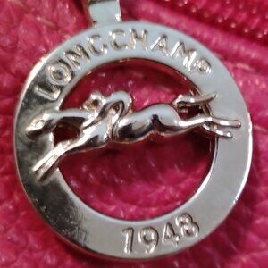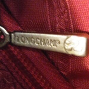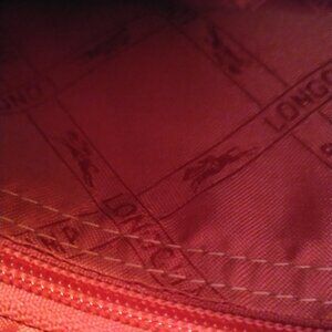 • 2 interior pockets both about 7 inch / 16 cm long, one with zipper. Zipper pull has Longchamp name and jockey logos.