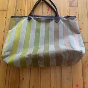 Longchamp unique Striped Canvas Tote Bag