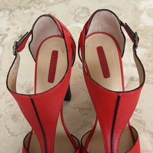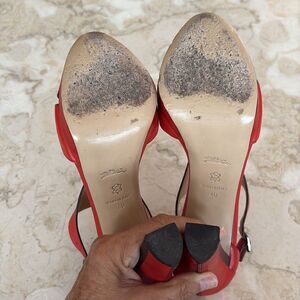 They’re a stunning red tone with black accent stitching and black accent on heels.