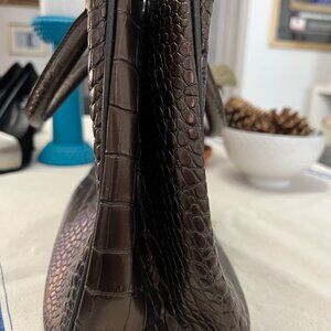 Longchamps Roseau tote in brown croc effect leather. Spacious satin lined interior.