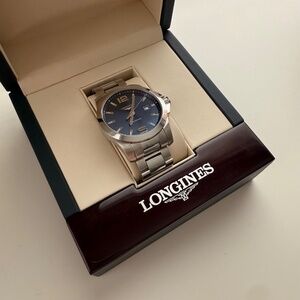 Longines Conquest Quartz 43 mm Stainless Steel Blue Dial. Worn a few times, comes with original box.