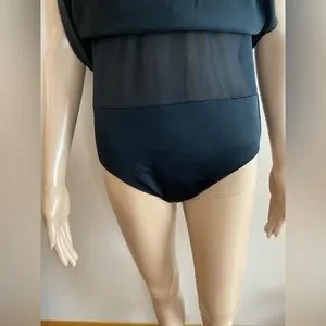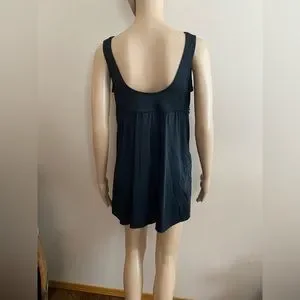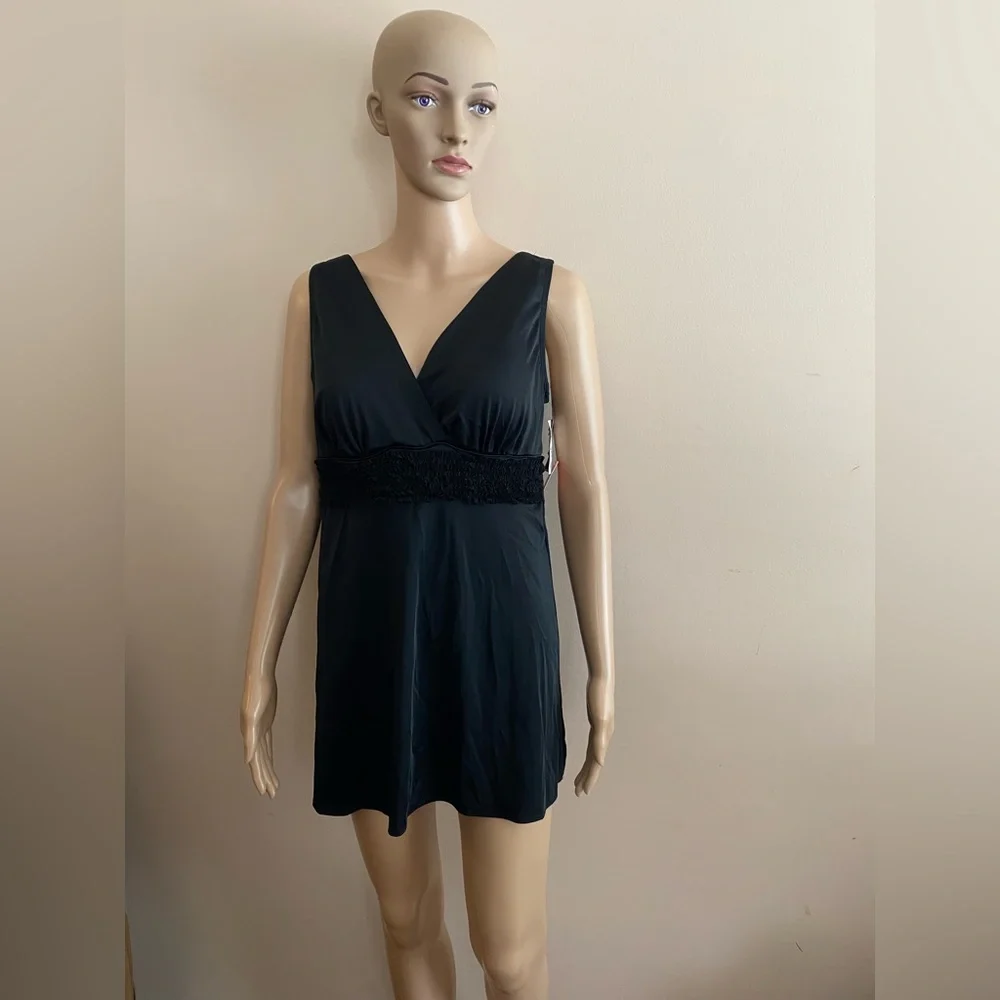 Classic Black Swimskirt with Built-in Briefs. V-Neck Front. Fixed Straps. 4 Rows of Ruffle Mesh Lace under Bust. Soft Built in Cups. Inner Firming Shapewear.