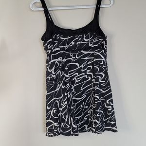 Longitude Swim Dress Suit One Piece Empire Waist Lined Black White Sz 12 EUC. See pictures for more descriptions and measurements