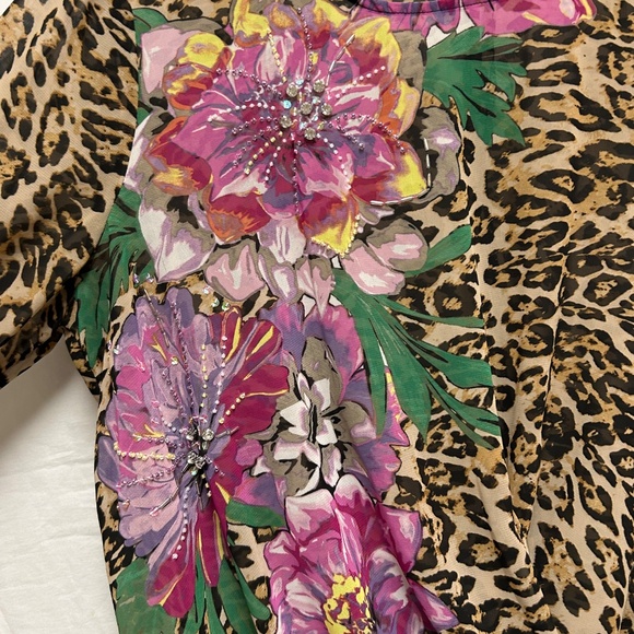 Stand out in this bold and feminine blouse from INC International Concepts. Featuring a unique blend of classic animal print and vibrant floral detailing, this long-sleeve top adds personality to any outfit. Lightweight and perfect for dressing up or down.