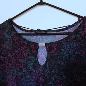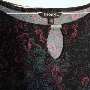 Long-sleeved T by George, Bohemian Pattern, Keyhole Neckline, XL.