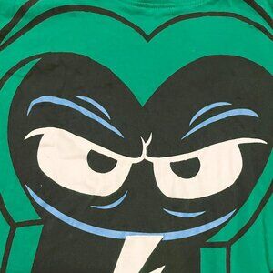 This shirt is pre-owned and in used condition. There are some marks on the white spots of the eyes. There is some pilling, fading and wear to the shirt. Please see all photos for exact item and see measurements below.