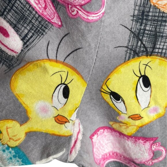 Looney Tunes Scrubs Top V-Neck Short Sleeve Flannel Cotton Gray Women’s Small