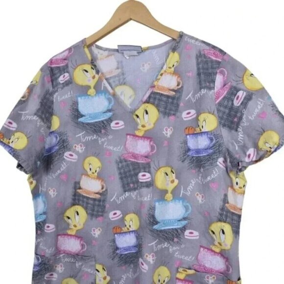 Looney Tunes Tweedy Bird Scrub Top Time For Tea Teacup Gray Large