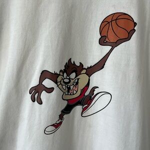 Classic white t-shirt featuring a Looney Tunes tag. Simple and stylish.