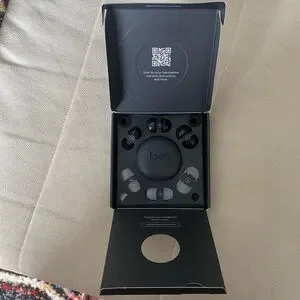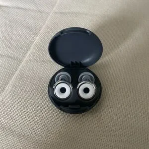 Compact black earplugs and case by Loop!