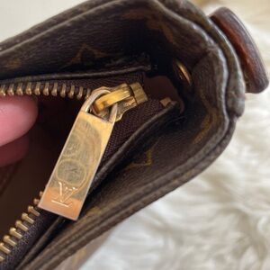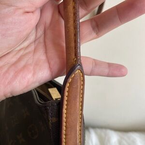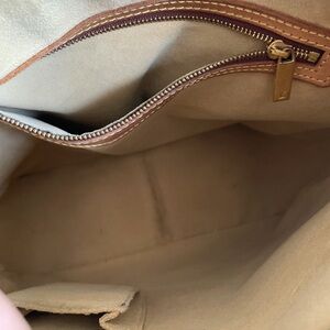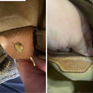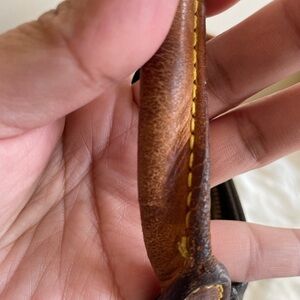 Handle has soft part though no tear or cut , some darkening on handle, dirt and stain inside