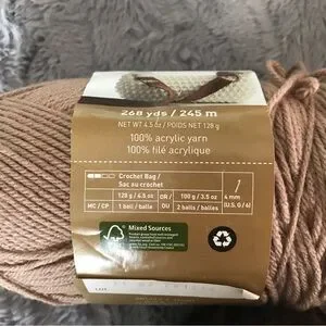 Bundle of 5 worsted yarn in soft taupe (2), heather (soft light mocha) and chocolate brown (1). Perfect for knitting and crochet projects.