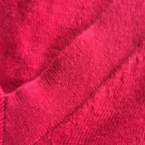 V neck with a little design. Good length not too short. Not too tight across the mid section either.