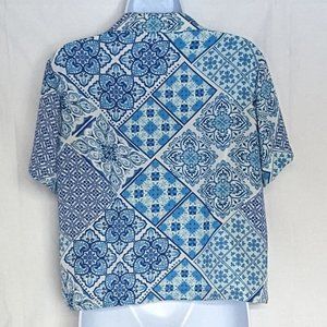 Loose-fitting v-neck button-front patterned blouse with collar Medium EUC