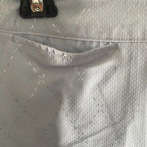 Excellent condition. Really cute Nancy Lopez golf skort. Has a pin detail on the front. The lines on the skort seem to shine. front and back pockets waist laying flat is 14'. 16" long