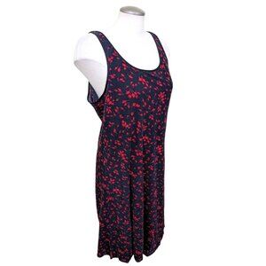 The Lord & Taylor 100% Pima Cotton Midi Dress in Size Large features a red and black rosebud dot print, making it a versatile piece for various occasions such as travel, weddings, casual outings, and business events. The sleeveless design, pullover closure, and lightweight material ensure comfort and ease of wear, while the midi length adds a touch of elegance. Perfect for the summer, fall, and spring seasons, this tank dress from a reputable brand like LORD & TAYLOR is a classic and feminine addition to any woman's wardrobe.