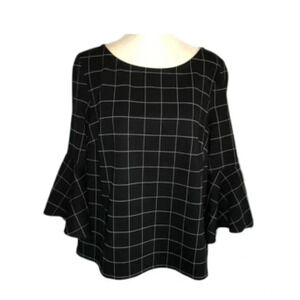 Lord & Taylor Bell Sleeve Top | Black and White | Size XS